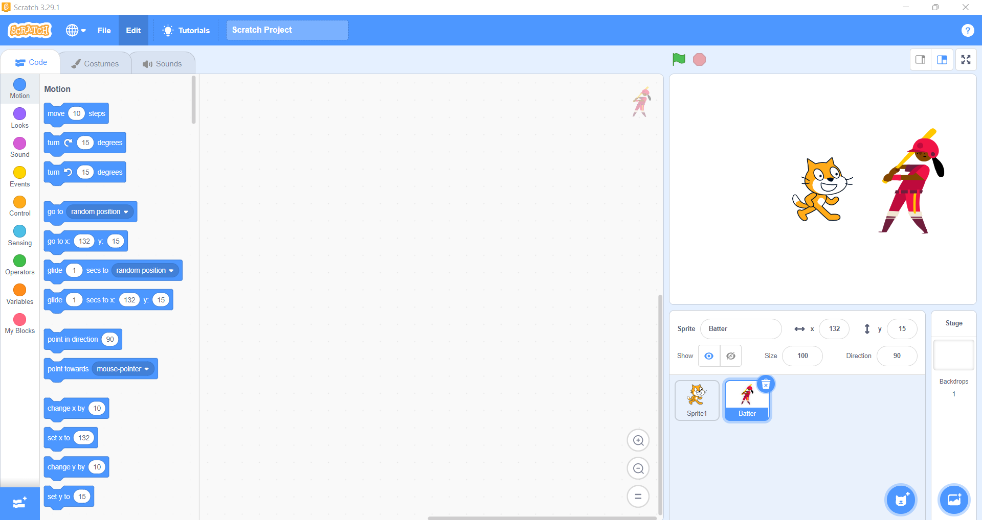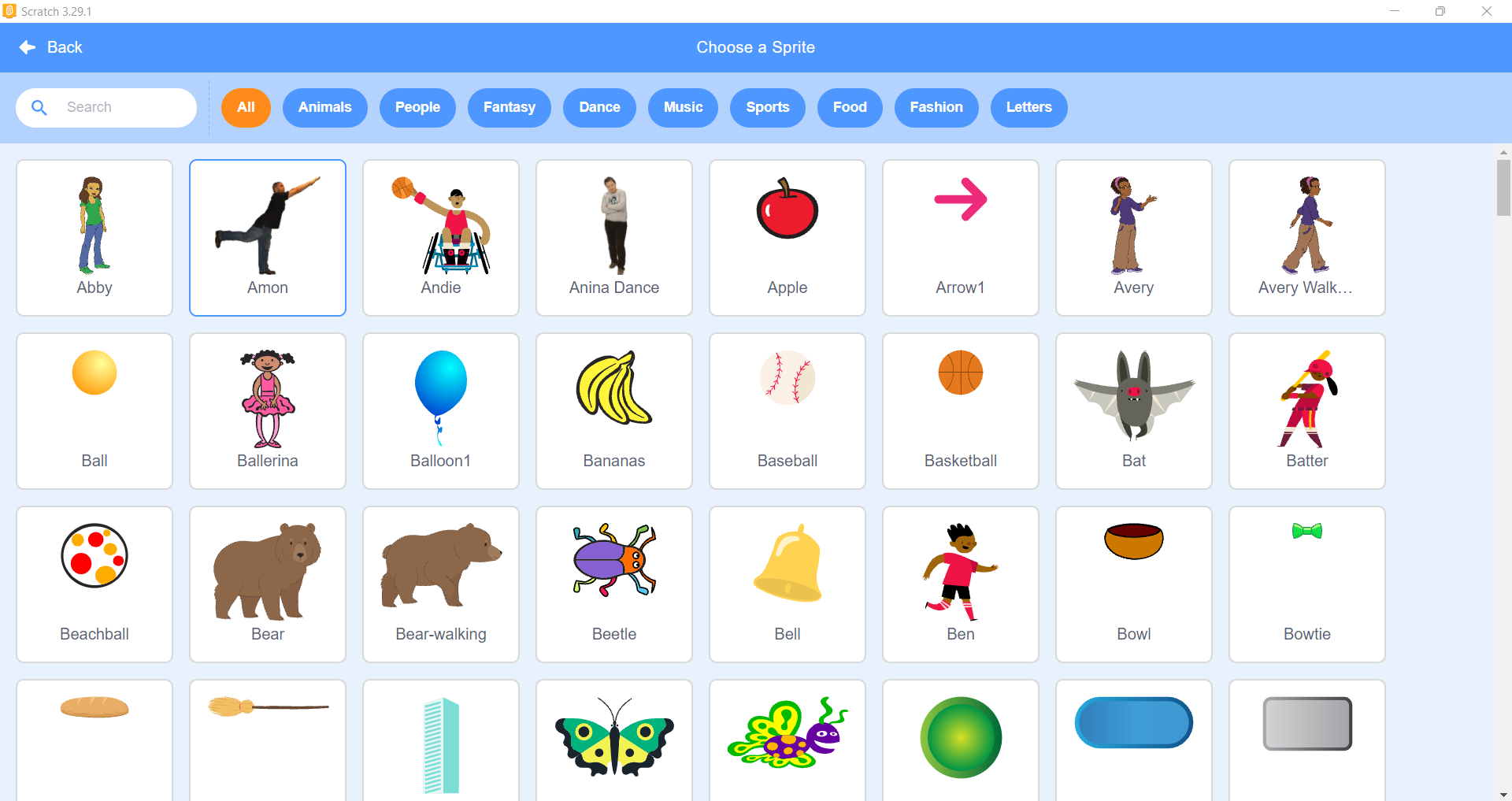 - Select a Sprite of your choice: We selected the boy with the bat on a red jersey.